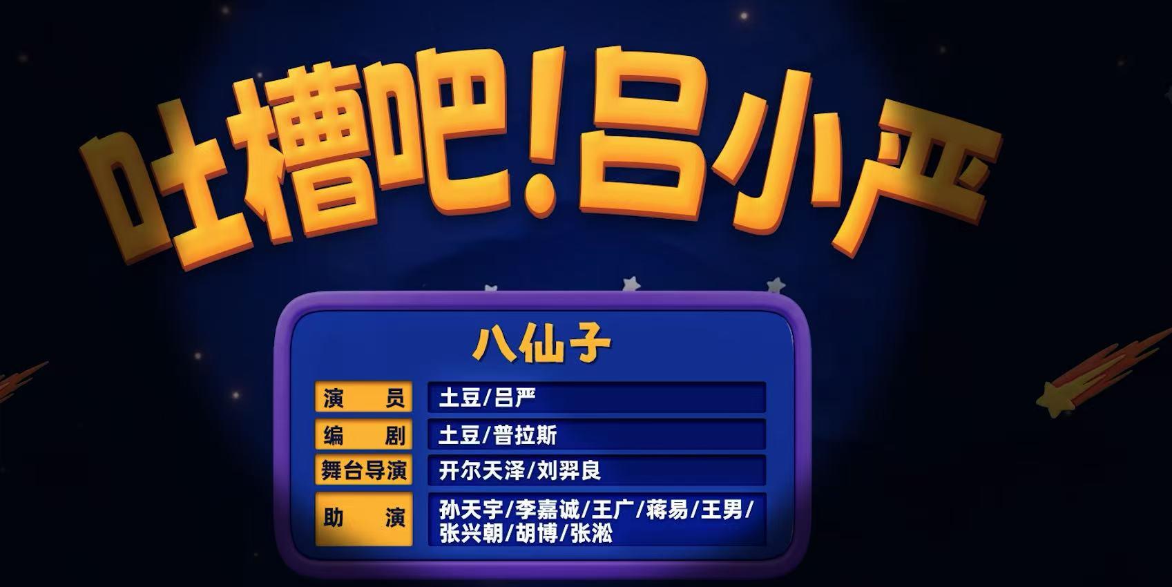 阔别马东喜剧综艺(《一年一度喜剧大赛》《喜人奇妙夜》)三年之后,土豆终于归来,携手吕严再登舞台,首部作品《吐槽吧!吕小严》却不是旧时味道,以致于褒贬不一。诸多批评的声音认为,这个作品内部梗太多,略显无聊,总之没以前的好笑。
