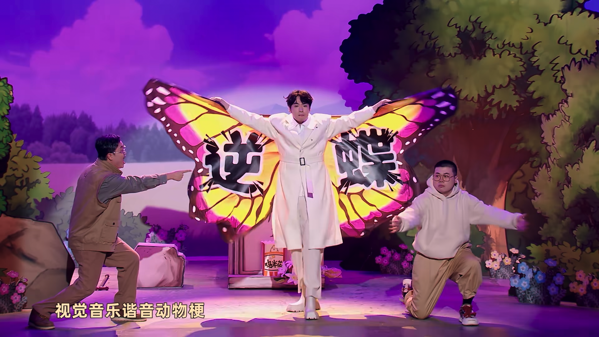 第三幕“对抗”,两人争锋相对,决定比上一场。老土豆召唤出《父亲的葬礼》中的传奇角色半人马,属于“内部梗”,而吕小严直接甩出“视觉音乐谐音动物梗”——翅膀写有“逆蝶”(谐音“你爹”)的角色,创飞土豆,吕小严赢了。